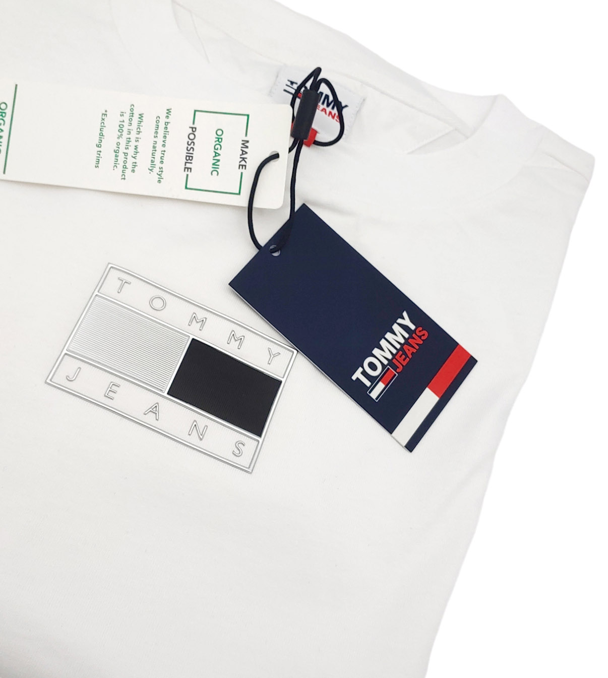 - Metaliczne logo Tommy Jeans z przodu i na ramionach