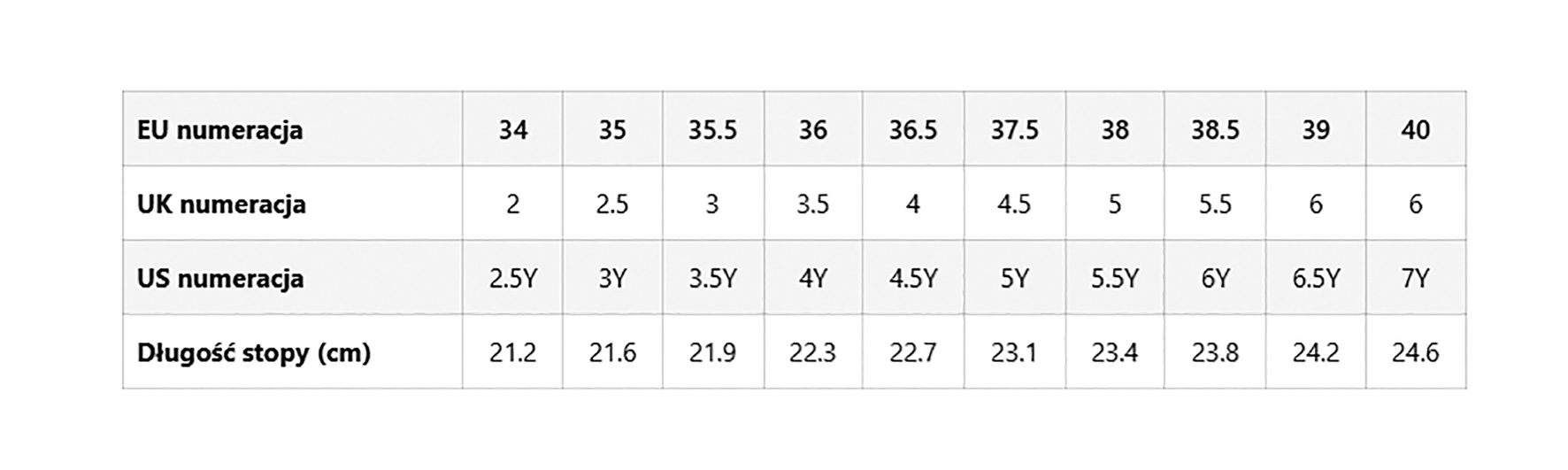 - Rozmiar US: 5,5Y (Młodzieżowe)