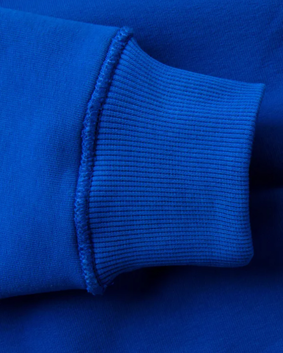 Na jednej stronie bluza prezentuje minimalistyczny, ale niezwykle stylowy design. Wykonana z wysokiej jakości, ciężkiego materiału, charakteryzuje się granatowym kolorem i czystymi, prostymi liniami. Z przodu znajduje się kieszeń typu kangurka, która jest praktycznym dodatkiem do przechowywania drobnych przedmiotów lub rozgrzewania dłoni w chłodniejsze dni. Gładka faktura materiału dodaje bluzie ekskluzywnego wyglądu, a jednolita kolorystyka pozwala na łatwe dopasowanie do różnych stylizacji.