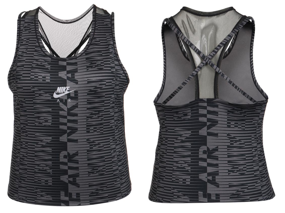 Koszulka Damska Nike Air - Do Biegania - Krój Bokserki - Tank Top - Print Czarny i Szary - CZ9415-010 - Rozmiar M