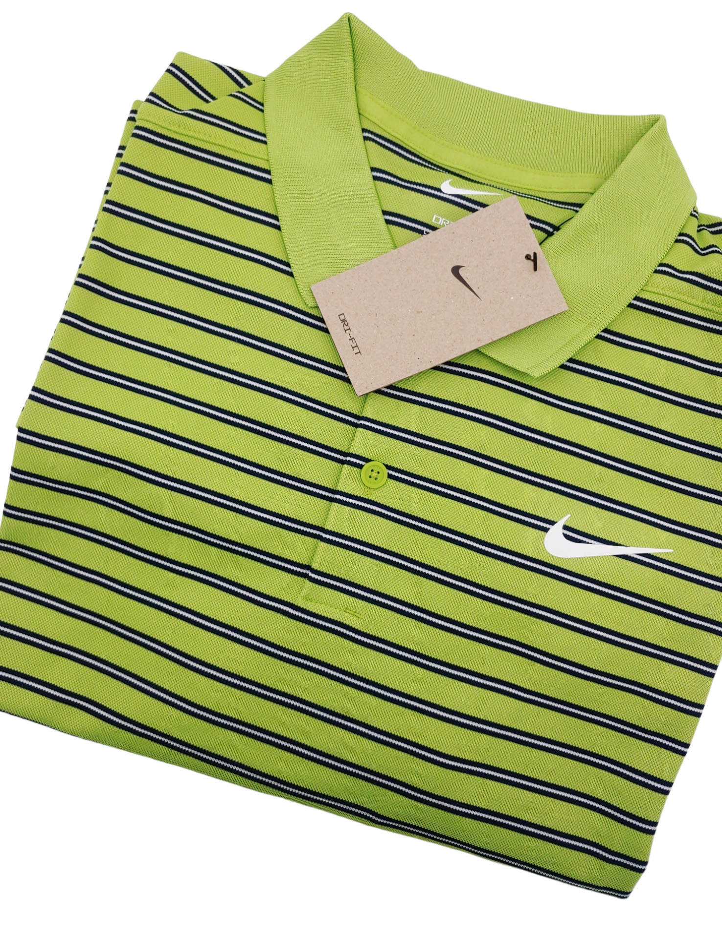 Koszulka polo Nike Dri-FIT Victory, wykonana z odprowadzającego wilgoć materiału w paski, nadaje nowoczesnego charakteru grze w golfa. Kołnierzyk tego modelu jest prążkowany, aby zapobiec zwijaniu się.