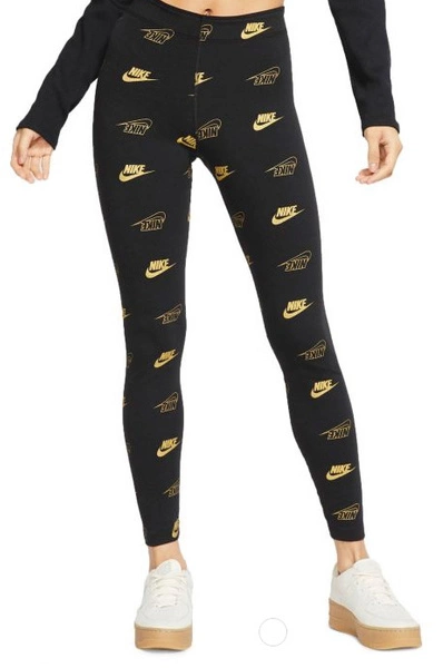 Zabłyśnij stylem z damskimi legginsami Nike Tight Fit w eleganckim czarnym kolorze ze złotym logo.