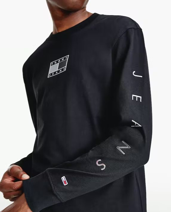 - Metaliczne logo Tommy Jeans z przodu i na ramionach