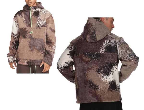 Poznaj multikolorową bluzę męską Nike DD5009004 w rozmiarze S z linii Sportswear Essentials+. Ta polarowa bluza z kapturem i zamkiem 1/2 wyróżnia się nadrukiem w stylu sprayu, łącząc ciepło z nowoczesnym designem. Wielobarwny wzór i wygodny krój sprawiają, że jest idealna na codzienne stylizacje, chłodniejsze dni lub relaks, oferując styl i funkcjonalność.