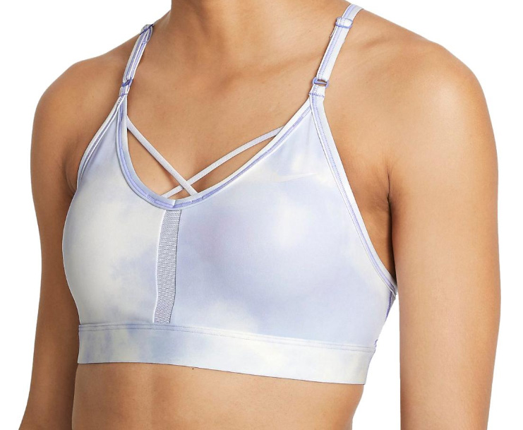 Stanik uszyto z tkaniny Dri-FIT. Jej budowa pozwala zachować suchość, dzięki czemu można intensywniej i dłużej trenować. Wyjątkowa struktura materiału Dri-FIT składa się z mikrowłókien i wspomaga naturalny system chłodzenia ciała, odprowadzając wilgoć i równomiernie rozprowadzając ją po powierzchni ubrania, tak aby mogła jak najszybciej wyparować.
