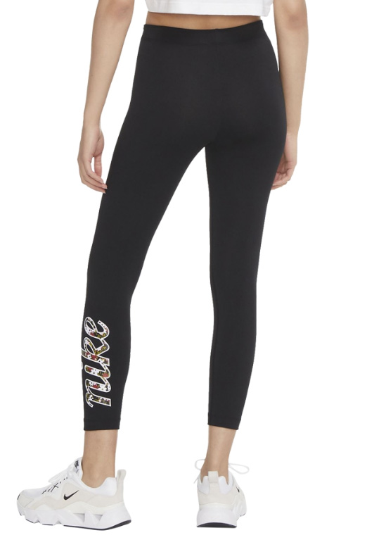 Nike Legginsy Damskie - Czarne - Kwiatowe Logo - Wysoki Stan - Nogawki 7/8 - Tight Fit - CU5342-010 - Rozmiar S