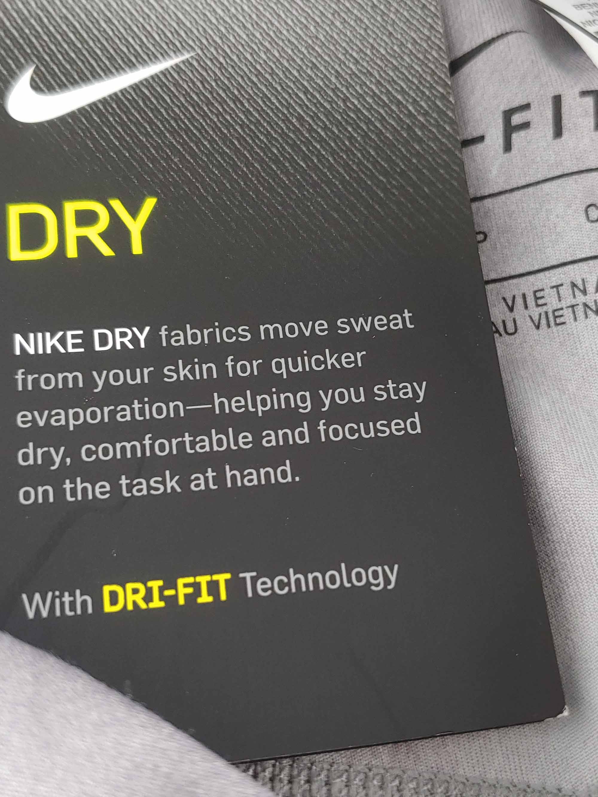 Miękki i elastyczny materiał z technologią Dri-Fit odprowadza wilgoć ze skóry, umożliwiając jej szybkie odparowanie, co daje wygodę i uczucie suchości.