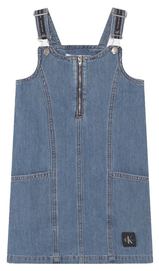 Sukienka dziewczęca z kolekcji Calvin Klein Jeans. Model o prostym kroju, wykonany z denimu na ramiączkach.